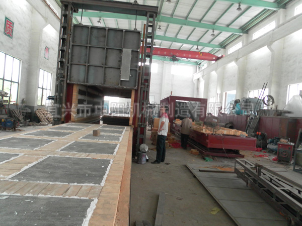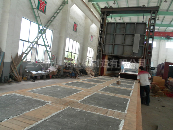 台车上铺设高强度耐高温的铸钢炉底板,以承载工件之用。为了防止工件加热后产生的氧化皮通过炉底板间的缝隙落入加热元件周围而造成加热元件损坏,炉底板与炉体接触处采用插入式接触。为保证正常使用,需要经常吹扫台车炉底板下方的氧化皮,一般每周吹扫一次,吹扫时将炉底板吊起,用压缩空气将电阻丝槽内的氧化皮屑吹扫干净,注意防止氧化皮卡在炉丝内引起短路。
