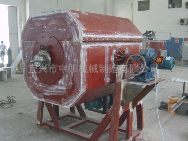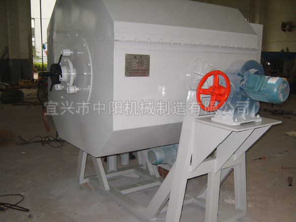 该滚筒式电阻炉是由滚筒、炉壳、炉衬、炉架、炉罐驱动装置、滴液系统等组成。滚筒是一个八角形的炉罐,滴液从后端通入,前端排出废气,并点火烧封,排气口有调节盖帽,可调节炉罐内的压力。工件的加入和倒出都在炉罐的前端,炉罐按固定的顺时针方向回转,回转的速度可无级调控,用户可根据被处理的工件形状、尺寸、高温状态下的温度,确定合适的回转速度。
